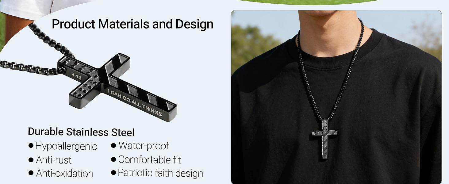 Premium Stainless Steel: Crafted from stainless steel, this cross pendant necklace is lead-free, nickel-free, and hypoallergenic. It resists rust, tarnish, and corrosion, ensuring long-lasting durability for everyday wear or special occasions.Blending practicality with design, it suits everyday wear or gifting friends