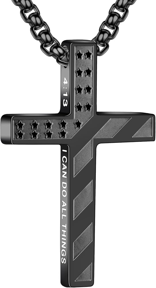 Black Cross Necklaces for Men: Featuring "4:13 I CAN DO ALL THINGS," this cross necklace symbolizes faith, strength, and love. Perfect for baptisms, Christmas, or Father's Day, it comes in an elegant gift box—an ideal Christian gift for men and teen boys.