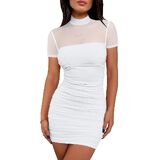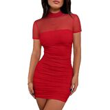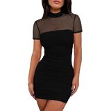 Design:Features a flattering mock neckline, sheer mesh short sleeves, slim-fit silhouette,and ruched detailing throughout. The bodycon design enhances your natural shape and suits different body types.