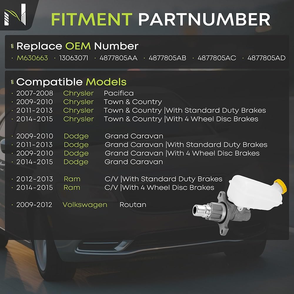 Upgrade your Dodge Grand Caravan's braking system with this high-performance master cylinder and reservoir assembly. Engineered as an exact replacement for OEM part #M630663 and related numbers, this component guarantees perfect fitment and uncompromised safety for 2009-2015 models.