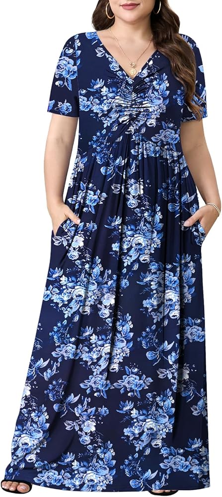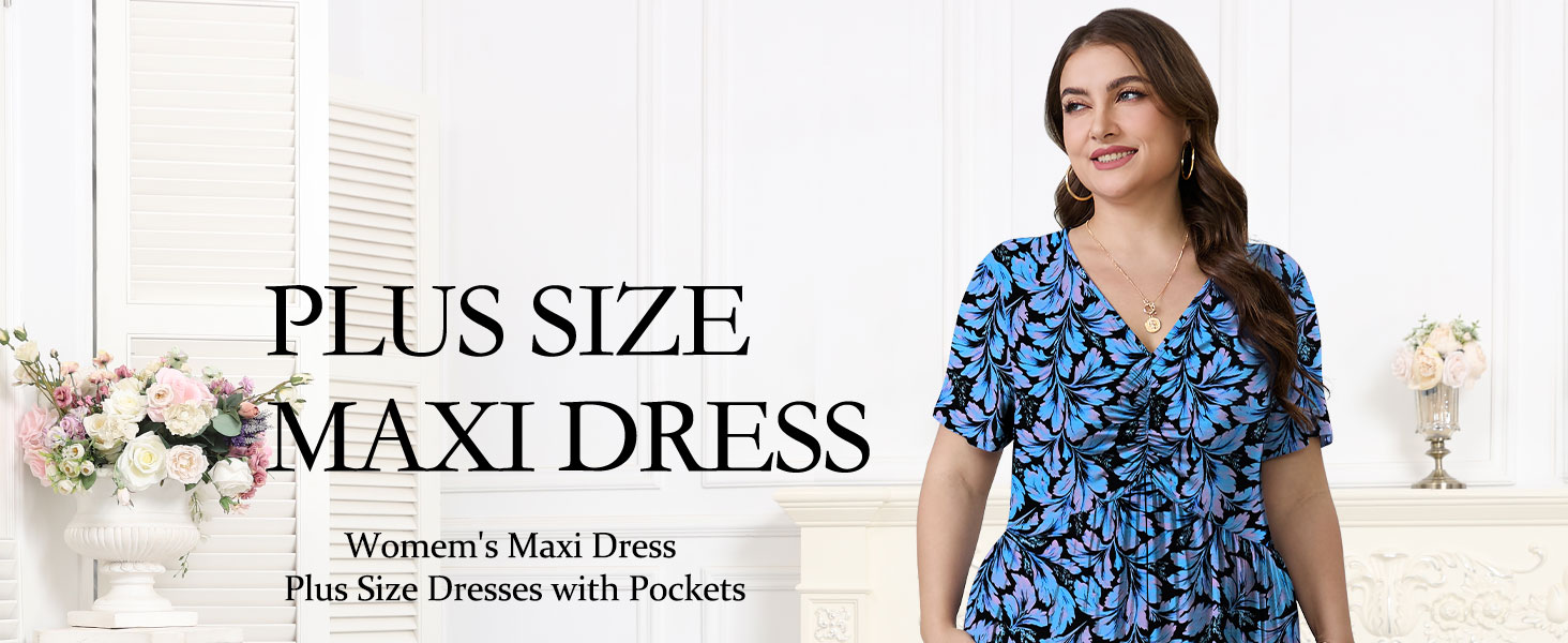 Material: 95% Rayon and 5% Spandex. Women's plus size maxi dress comfortable, casual and soft fabric