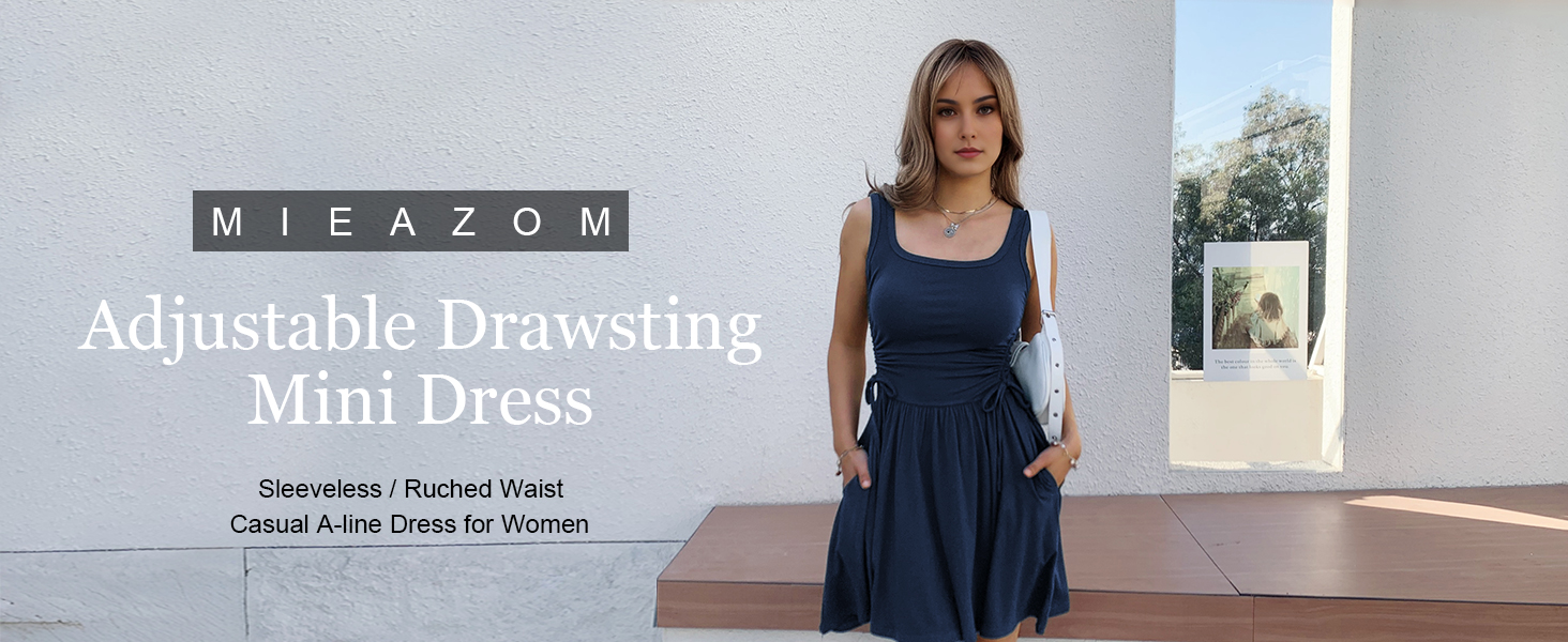 Drawstring Waist Tie & Functional Pockets: This summer dress features a drawstring waistband, allowing for adjustable fit and adding a touch of versatility to the overall look. The convenient pockets add hands-free practicality. This A-line dress flattering women's mini dress with pockets for everyday convenience.