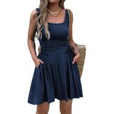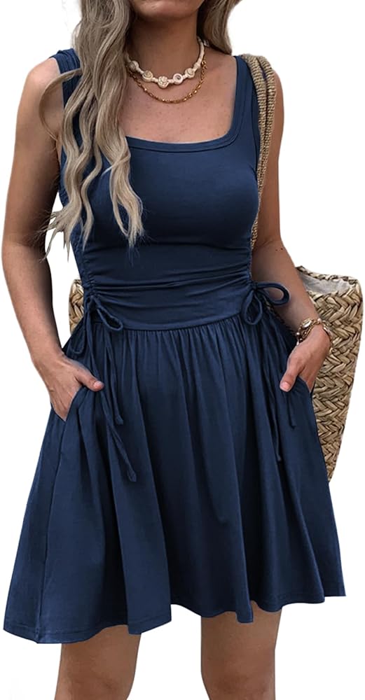 Versatile for Every Occasion: This sleeveless square neck dress seamlessly transitions from beach outings to casual daily wear and even elegant evenings. Achieve a relaxed look with sandals, or dress it up with accessories for a more formal vibe. The adjustable waist and flattering A-line fit ensure a customizable, comfortable silhouette, making it your go-to dress for any summer event.