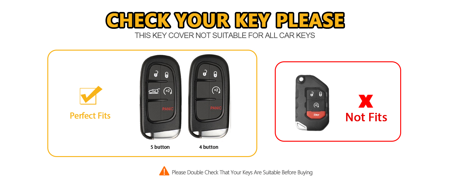 【Generally Compatible】:The for Jeep car key cover is compatible with Jeep Grand Cherokee (2014-2022),Jeep Cherokee (2014-2021),Jeep Compass (2017-2020),Jeep Trailhawk (2017-2020),Jeep Renegade (2014-2022),Dodge Charger SRT (2019-2021),Dodge Charger SRT Hellcat (2015-2018),Dodge Challenger (2015-2021),Dodge Dart (2013-2016),Dodge Durango (2014-2021),Dodge Journey (2014-2021),Dodge RAM (2013-2018),Chrysler 200 (2015-2021),Chrysler 300 (2011-2021).