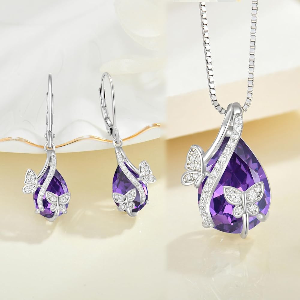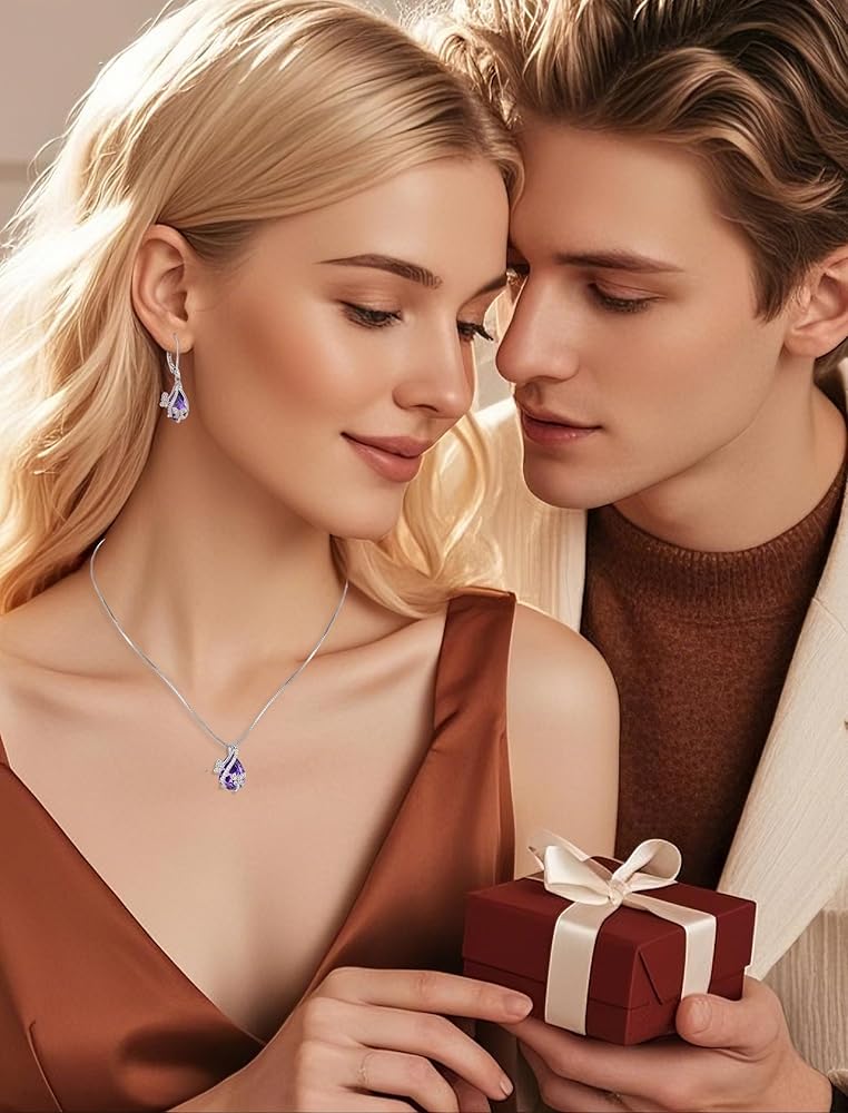Versatile for Elegant or Casual Wear: These amethyst birthstone earrings necklace jewelry set are versatile enough to elevate your everyday style or complement a formal evening outfit. They are a must-have accessory for any jewelry collection