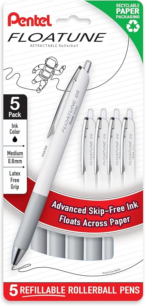 The latest evolution of rollerball ink enables your ideas to float down the stream of imagination. Floatune's water based, oil infused ink formula writes smoothly and won't skip. The dual ball mechanism inside of the pen tip allows for maximum ink flow. Experience less friction when you write. An all-matte white body provides a clean and sophisticated look to match a high-quality minimalist aesthetic.