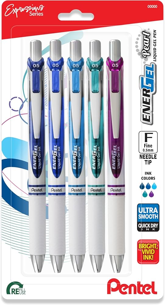 Featuring advanced liquid gel technology, the EnerGel Pearl Expressions Pack offers precise, smooth lines with a 0.5mm fine needle tip in a variety of assorted ink colors. Designed with sleek barrels and stainless steel accents, these gel pens combine style with top-notch functionality for all of your creative projects. Tired of messy ink smears and uncomfortable grips interfering with your writing flow? The EnerGel Expressions Pack provides the ultimate solution for flawless, comfortable writing—no matter your style. Make every stroke count with your go-to gel pens for smooth writing, vivid colors, and dependable quality.