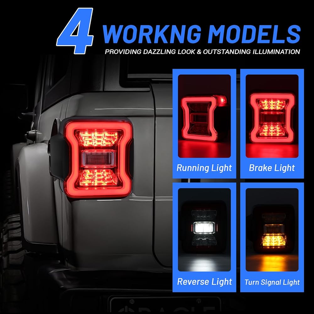 JFN LED Tail Lights Fit for 2008-2017 Jeep Wrangler JK,LED Rear Light Set Brake Lamp Tail Lamp Assembly (Clear)
