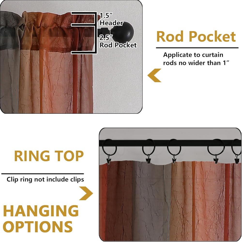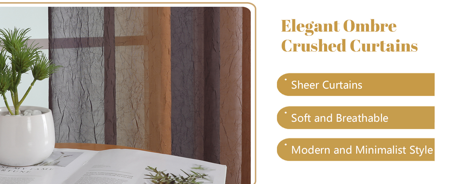 Light-Filtering Crushed Sheer Fabric: The elegant ombre curtains are crafted from 100% polyester fabric, featuring a soft feel and smooth texture. Hang them in your favorite space to decorate your windows and enhance the casual atmosphere of your home. They softly diffuse natural light while maintaining privacy