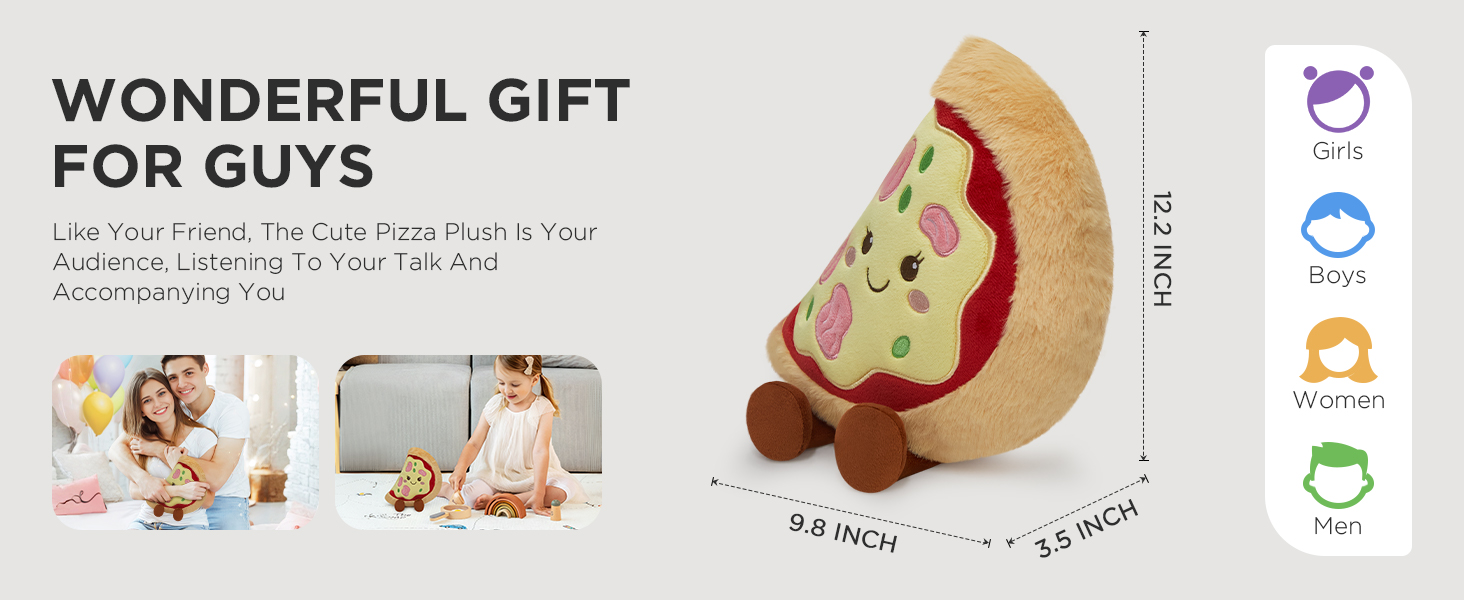 PRACTICALITY: The cute and silly appearance of the pizza inspires childlike innocence, and the cute expression design brings psychological suggestions to soothe emotions. Embracing it at night can significantly alleviate anxiety and quickly fall asleep with a soft touch. When given as a gift, its texture and symmetrical stitching craftsmanship showcase sophistication, making it a heartwarming choice for birthdays, holidays, or anniversaries