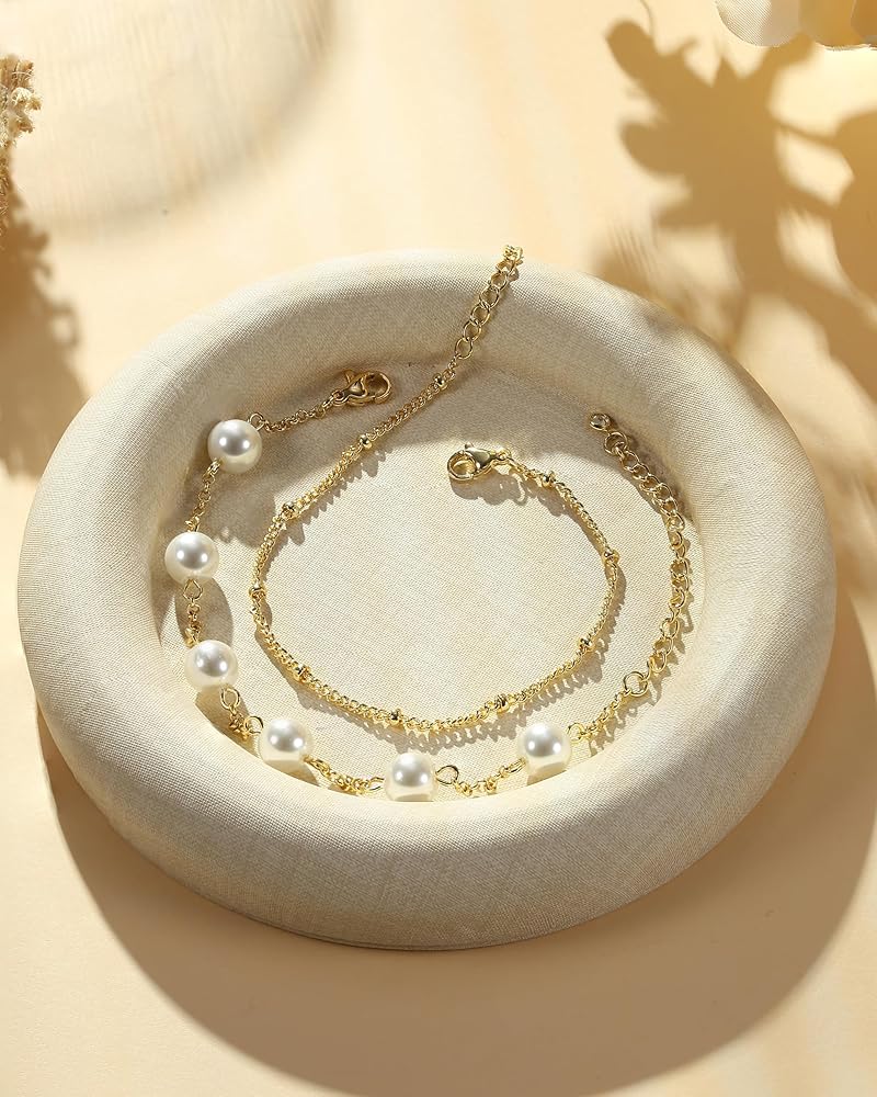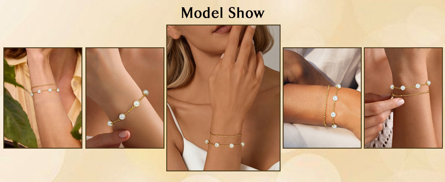 سوار اللؤلؤ والذهب: يمكن تجميع مجموعة أساور اللؤلؤ الخاصة بنا أو ارتداؤها بشكل فردي، وهي مصنوعة من مواد نحاسية قوية. تتميز أساورنا المصنوعة من الذهب اللؤلؤي للنساء بمشابك قوية مصممة لمقاومة التشوه والحفاظ على شكلها. لا تقلق بشأن الكسر أثناء النقل أو بعد ارتداء أساور اللؤلؤ الأنيقة للنساء. إنها قوية جدًا ومتينة مع لمسة نهائية غير مشوهة.