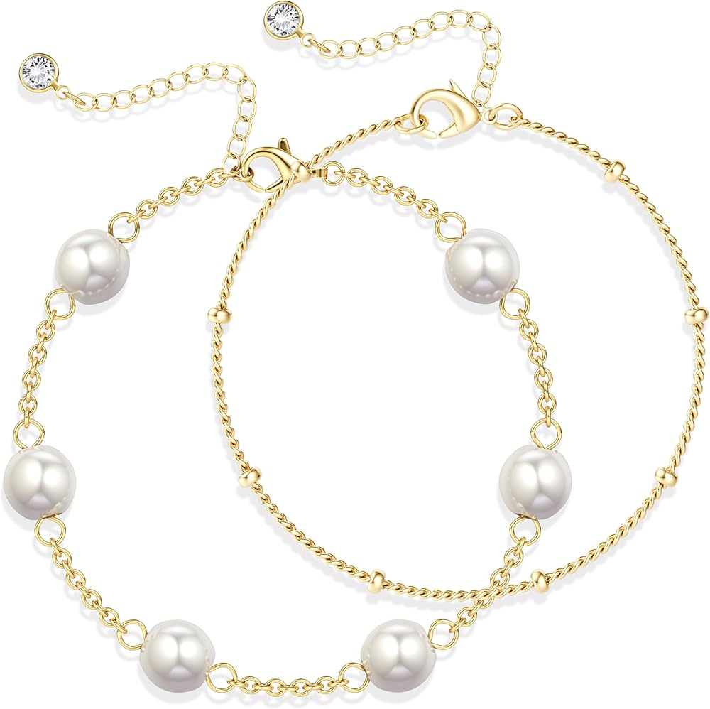 أساور اللؤلؤ الأنيقة: يتميز سوار اللؤلؤ الذهبي والأنيق للنساء بسوار سلسلة (6.5 بوصة + 1.97 بوصة)، مقاس اللؤلؤ: 8 مم، حجم زركون الذيل: 3 مم، عرض السلسلة: 2 مم، و1 * مشبك قوي على شكل جراد البحر. يمكنك المزج والمطابقة حسب رغبتك. عند ارتداء السوار الذهبي واللؤلؤي، يمكن تكديس هذا السوار اللؤلؤي الأنيق أو ارتداؤه بشكل منفصل، مما يلبي جميع احتياجاتك في الموضة. سوف تتألق مثل ألمع النجم في الحشد.