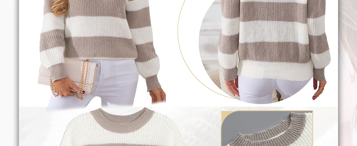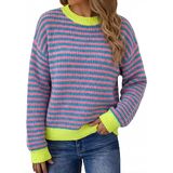 Refresh your wardrobe with this chic color block sweater for women, designed to combine comfort and effortless style. Featuring bold horizontal stripes, this striped sweater women option offers a playful yet timeless look that works for every season. Crafted from soft knit fabric, it feels gentle on the skin while providing cozy warmth without the bulk, making it one of the most versatile lightweight sweaters for women you'll own. The relaxed silhouette and drop-shoulder design create a modern, slouchy vibe, perfect for layering or wearing solo. As one of the must-have oversized sweaters for women, it delivers both coverage and ease, flattering different body types. The classic crew neck sweater for women design keeps it simple and stylish, while the ribbed knit texture adds dimension. Pair this pullover with jeans and sneakers for casual days, or layer under coats for a polished finish. Whether for lounging, commuting, or weekend outings, it's a go-to piece that transitions seamlessly between settings. Perfect for those seeking cute sweaters for women that balance comfort and style, this knit belongs on your list of essential fall sweaters for women 2025—a staple that keeps you cozy and on-trend year after year.