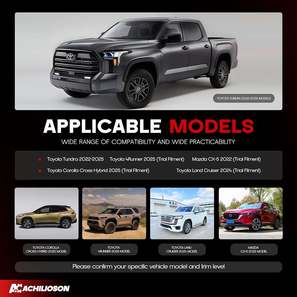 【Wide Compatibility】This 2PCS Front Seat Recline Lift Spacers Kit is for Toyota Tundra 2022-2025, and is also compatible with Toyota Corolla Cross Hybrid 2025, Toyota 4Runner 2025, Toyota Landcruiser 2024, and Mazda CX-5 2022 for trial use. It helps drivers and passengers of different heights adjust to a more comfortable seating height through flexible spacer combinations.