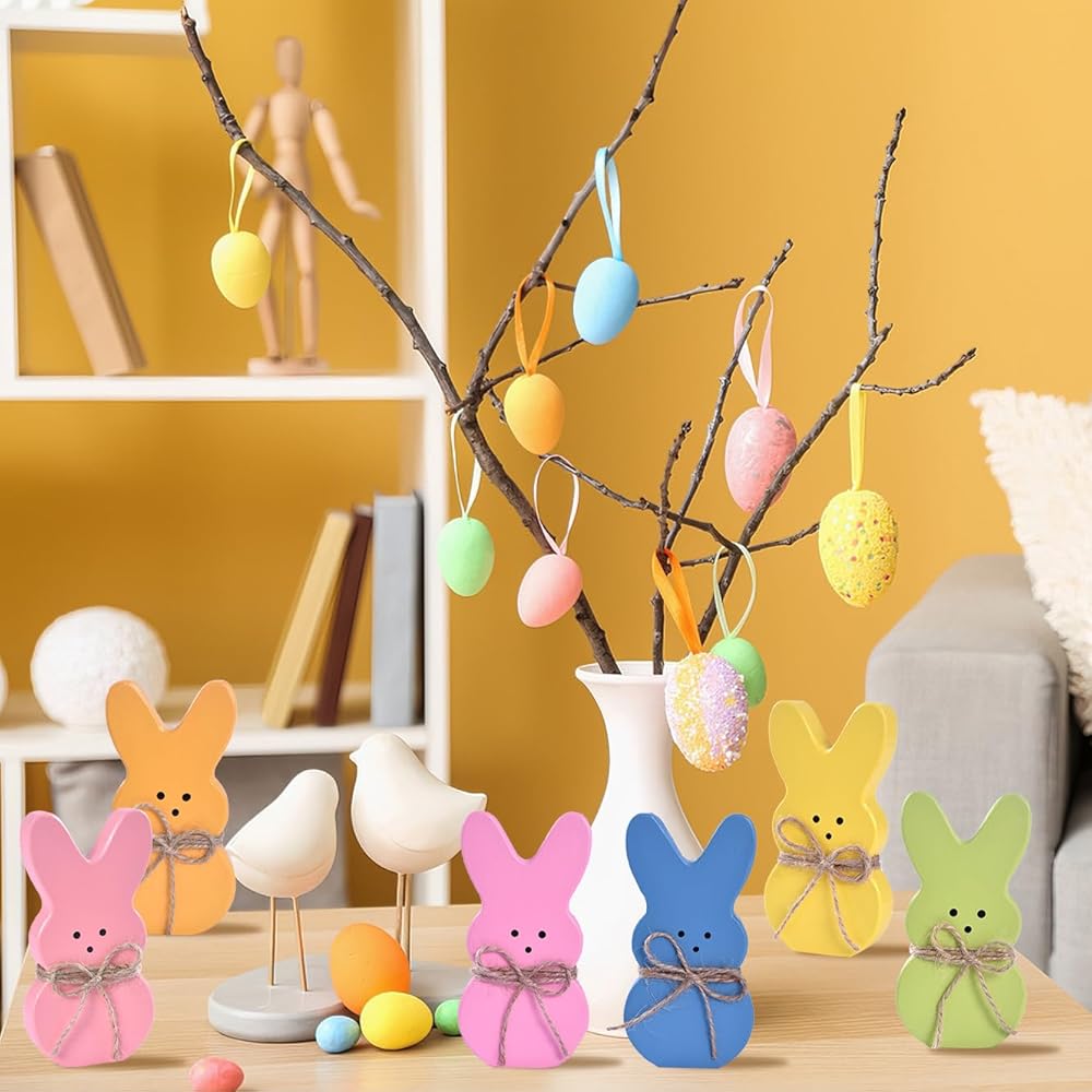 A JOYFUL SPRING GIFT FOR ANY OCCASION: With their sweet colors and rustic jute bows, this set makes a thoughtful gift for friends, family, or coworkers. Perfect for spreading seasonal cheer through peeps decor or wooden easter bunnies displays, these pieces bring warmth to Easter, spring gatherings, or housewarming celebrations.