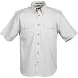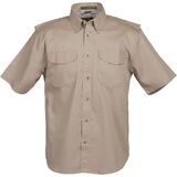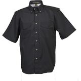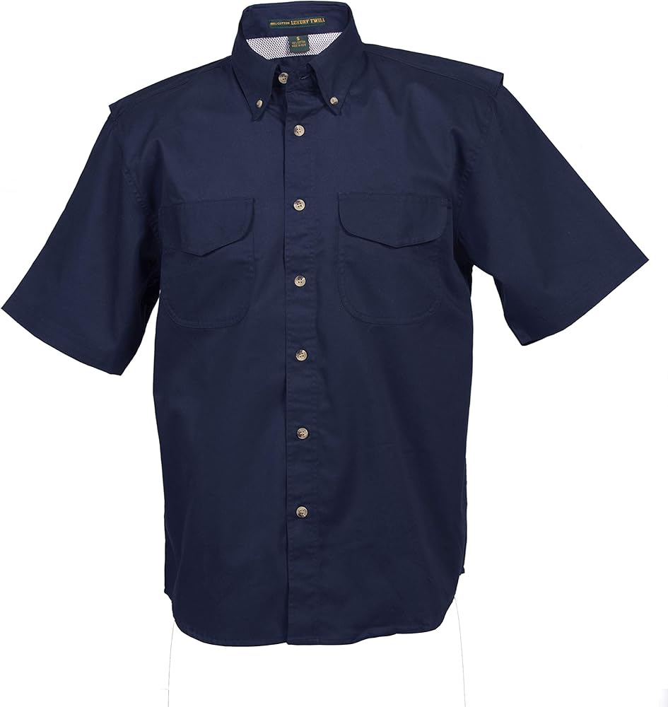 This short sleeve Vented-Mesh Back Twill Shirt will keep you comfortable and cool all day long without sacrificing quality. 6 oz. 100% brushed cotton twill. Caped, vented mesh back for breathability to help release heat and minimize stress, 7-button placket, Pen Stall, Velcro-button-flap pockets, and button down collar.