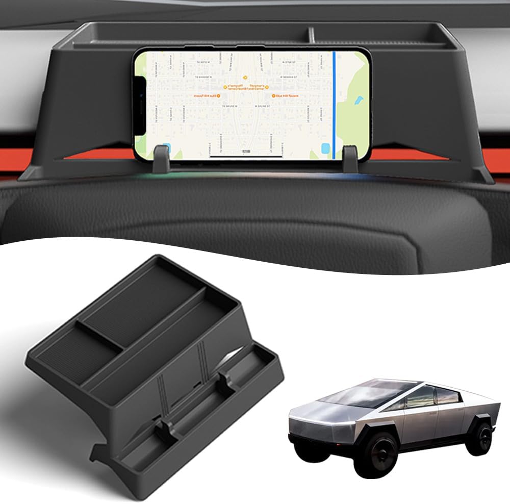 【High-Tech Aesthetic and Multi-Functionality】 Cybertruck dash storage tray design continues Cybertruck's futuristic tech style and blends perfectly with the interior, not only for storage, but also as a cell phone holder or categorized storage area, which is both practical and aesthetically pleasing