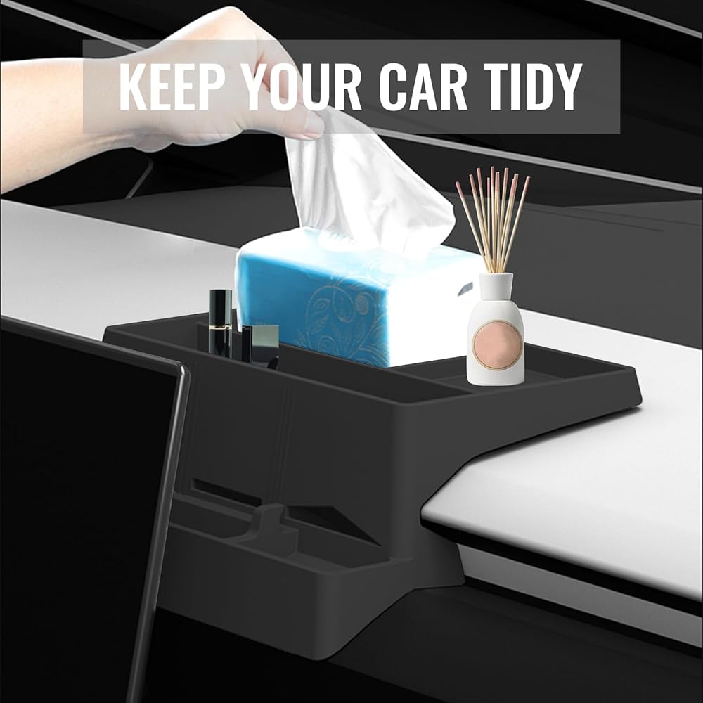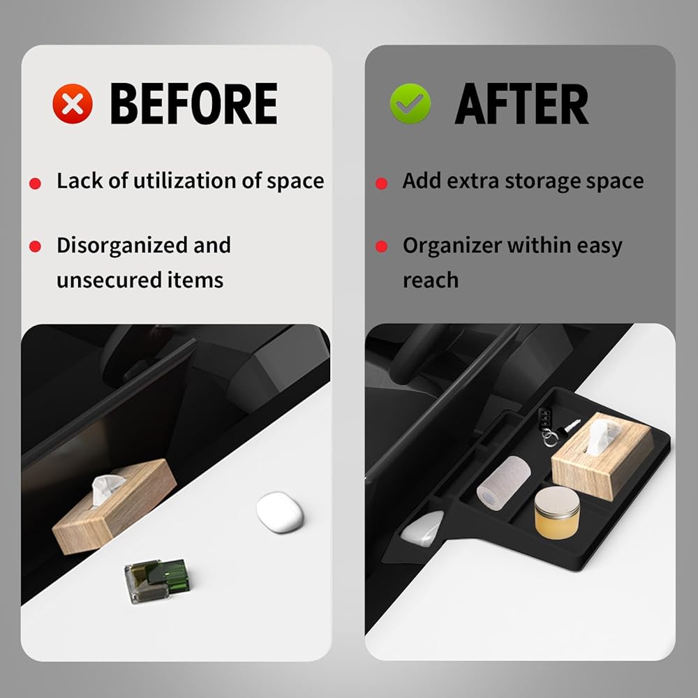 【Perfect Fit Design】 This silicone tray is customized for the space behind the Cybertruck screen and fits perfectly in the area behind the center screen, making the most of every inch of space and keeping the interior of the car neat and tidy