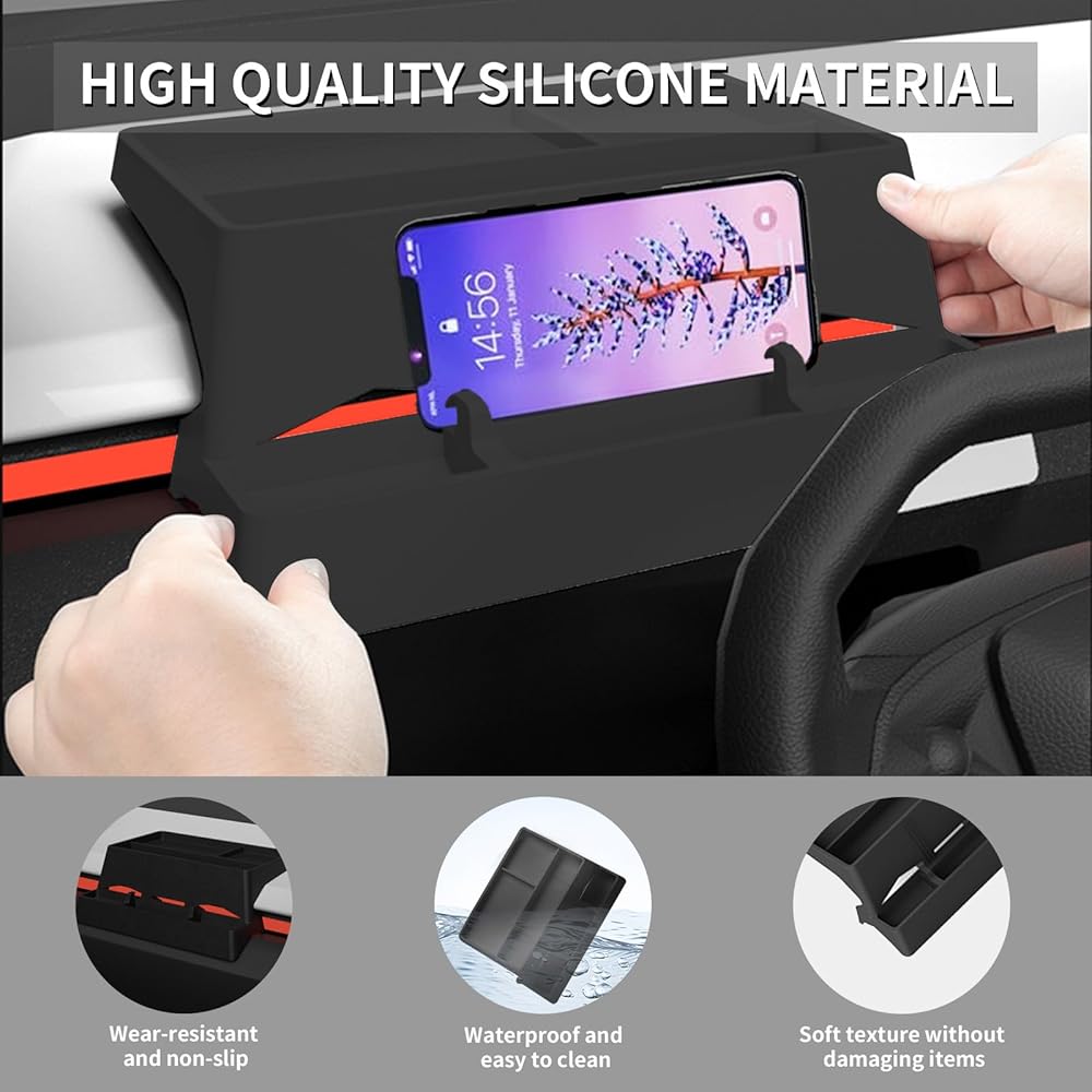 【Anti-Slip and Durable Material】 Our storage box is made of high quality silicone with excellent anti-slip properties, ensuring that cell phones, keys, sunglasses and other items won't slide or fall while driving, durable wear and tear, and no deformation in long term usage