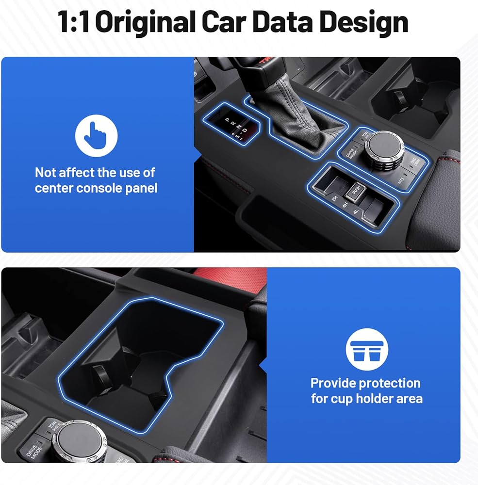 【All-Round Protection】Upgraded one-piece molded design with 40% larger coverage than the previous version. Fully covers the gear shift panel, extending to the cup holder insert. Effectively shields against key scratches, fingernail marks, fingerprint smudges and dust, keeping your center console brand new and spotless.