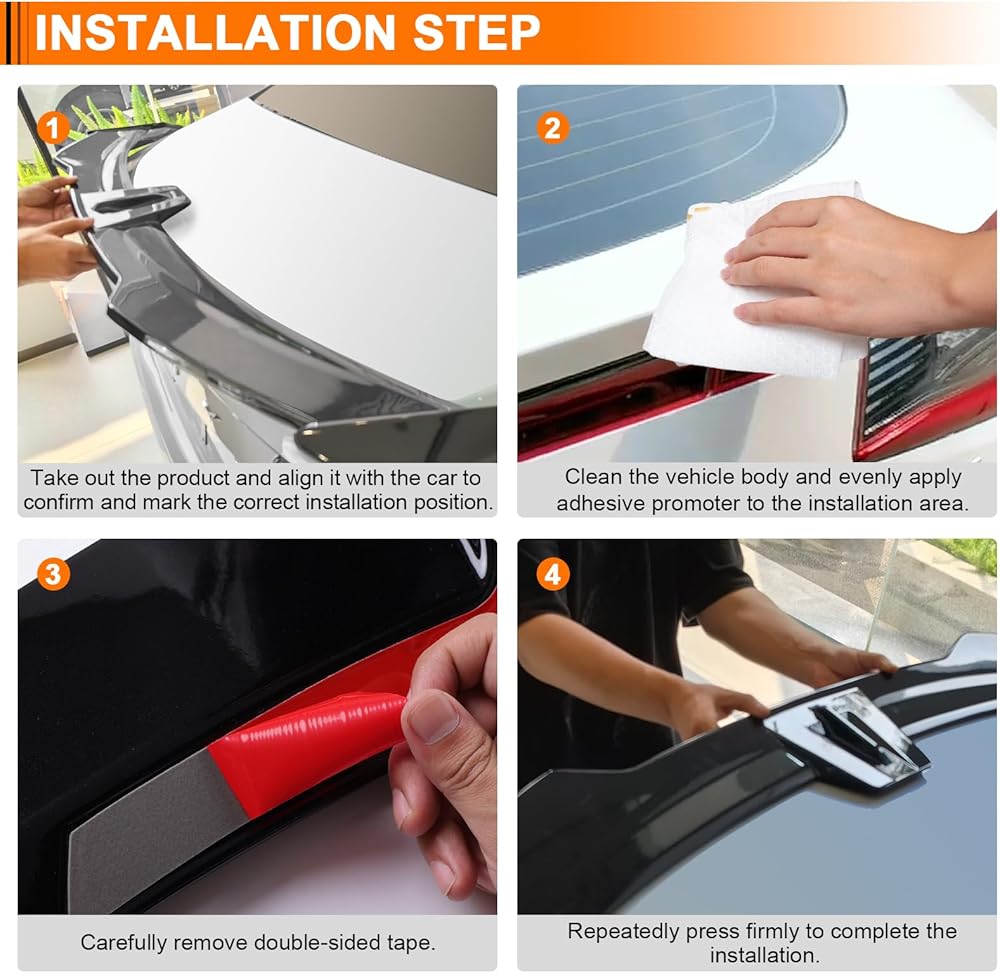 Easy to Install: The rear spoiler is installed with double-sided tape. The entire process is simple and firm, and you can complete it easily.