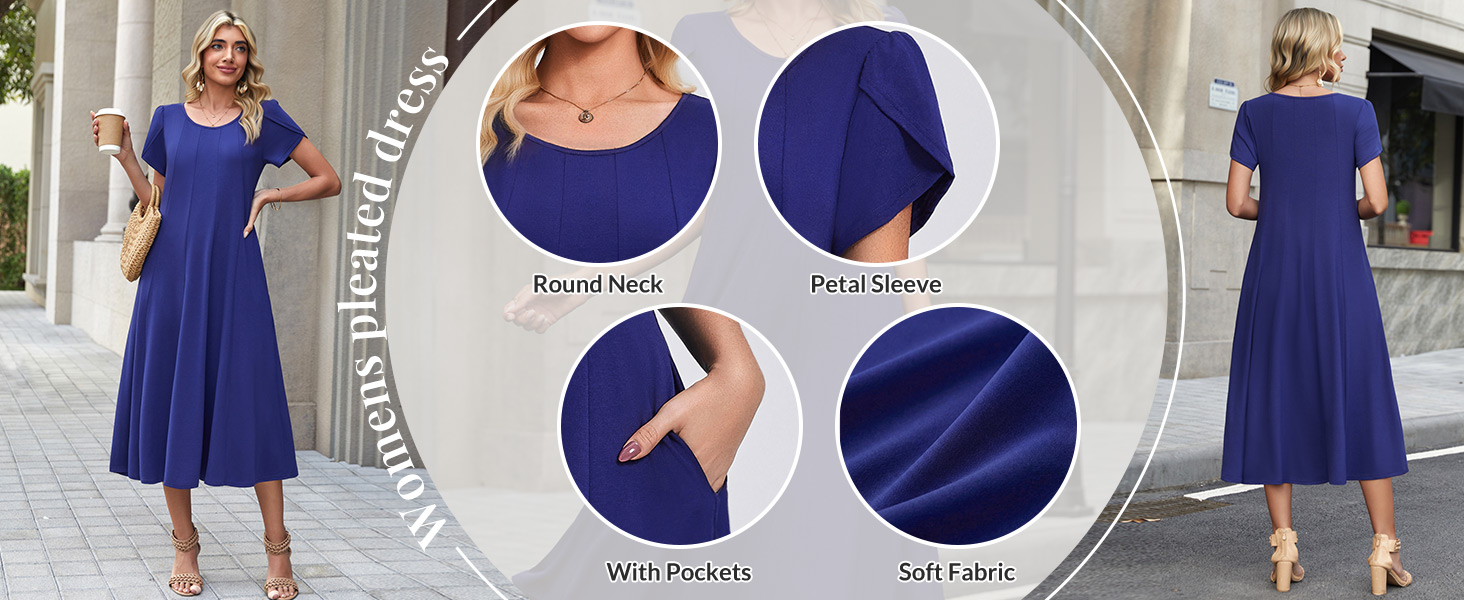 【Match】:Business casual dress 2026/ O neck long dresses/ Womens work dresses/ Swing dress/ Ladies modest dresses. Beach sundress pair it with sandals /sneakers for a casual look or dress it up with heels and statement jewelry. It is perfect for casual daily, travel and other leisure occasions in summer, spring and fall.