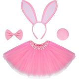 Easter Bunny Costume Kit:Step into a magical transformation with our all-in-one bunny costume set! This complete package includes a long-eared bunny headband, a classic pink bow tie, a fluffy pink tail, and a beautiful tulle tutu skirt — everything you need to create an adorable and cohesive rabbit character look instantly