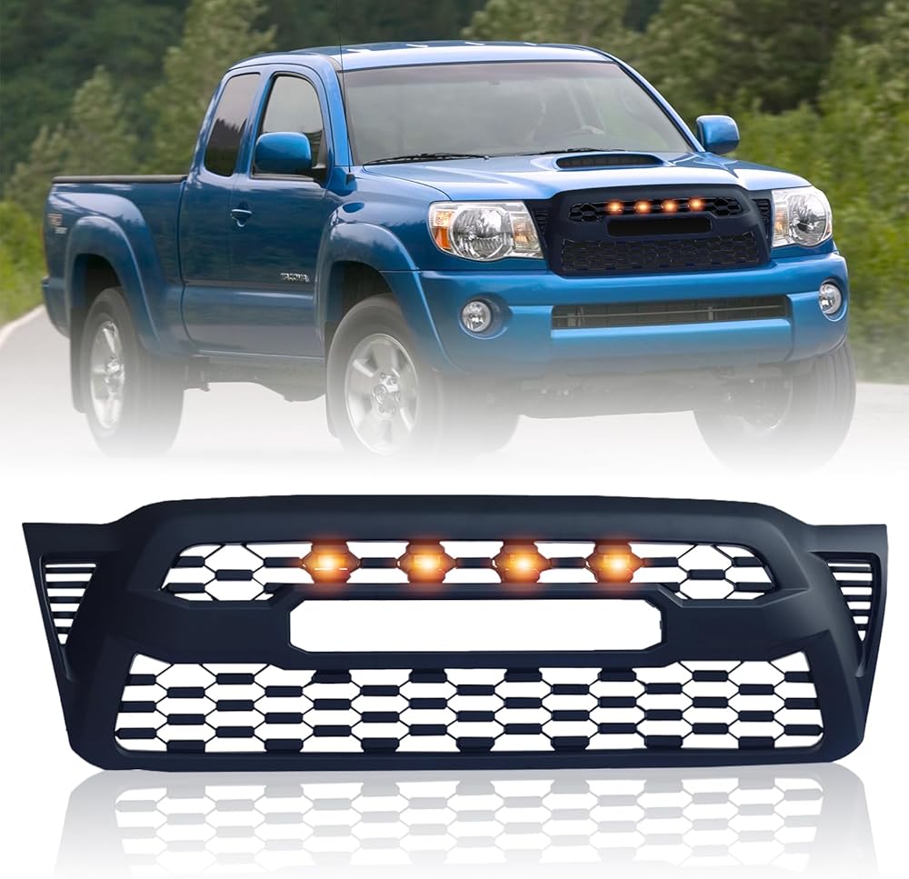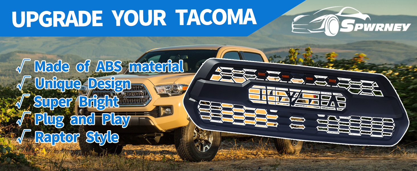 Streamlined & Sporty Look: The Spwrney 2016-2023 tacoma front grill with 4 amber LED lights integrates seamlessly with your Tacoma's exterior, providing a refined and athletic look. Its precise fit enhances your truck's overall design.
