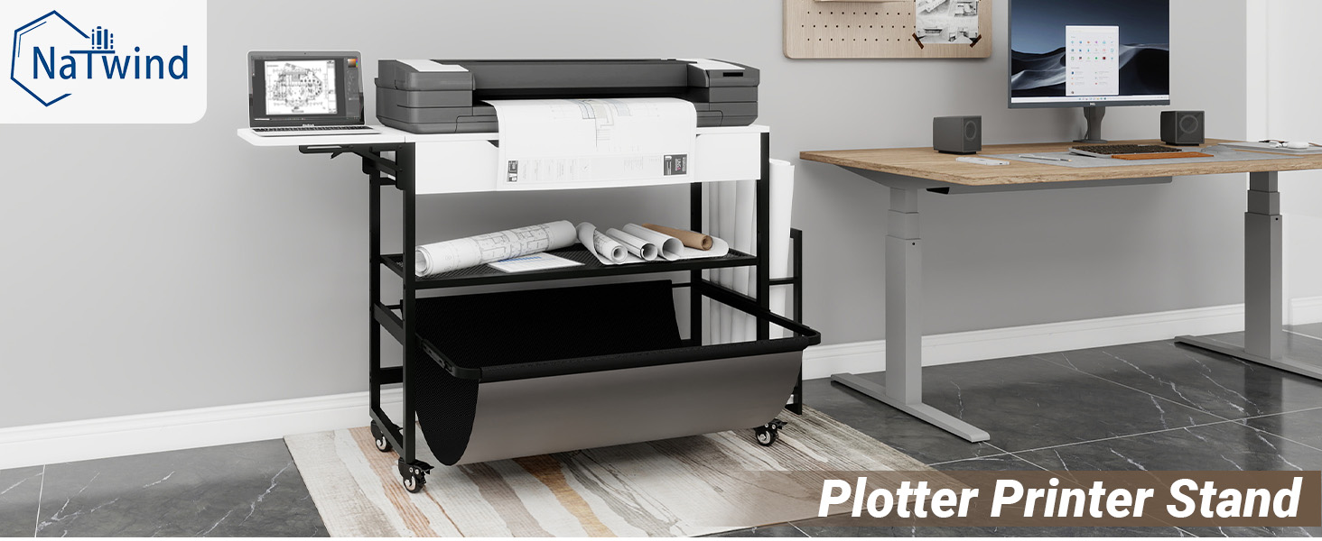 【Industrial-Grade Lockable Wheels】Equipped with 4 industrial 360° smooth-rolling lockable casters, This plotter printer stand allows effortless repositioning of fully-loaded equipment, while maintaining stability during printing jobs.
