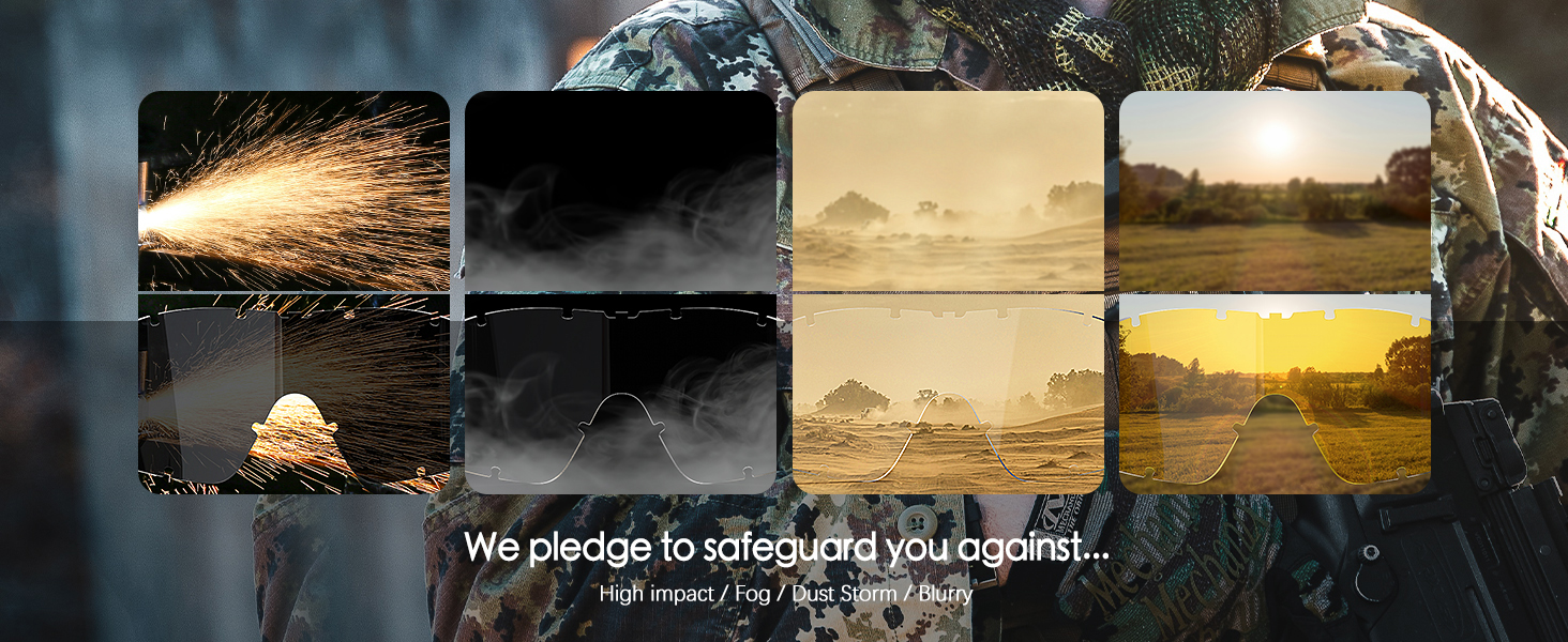 ☑Scratch resistant polycarbonate lens with anti-fog coating provides 99% UVA/UVB protection.Full Seal Wrap-around Lens gives full side vision and maximum protection