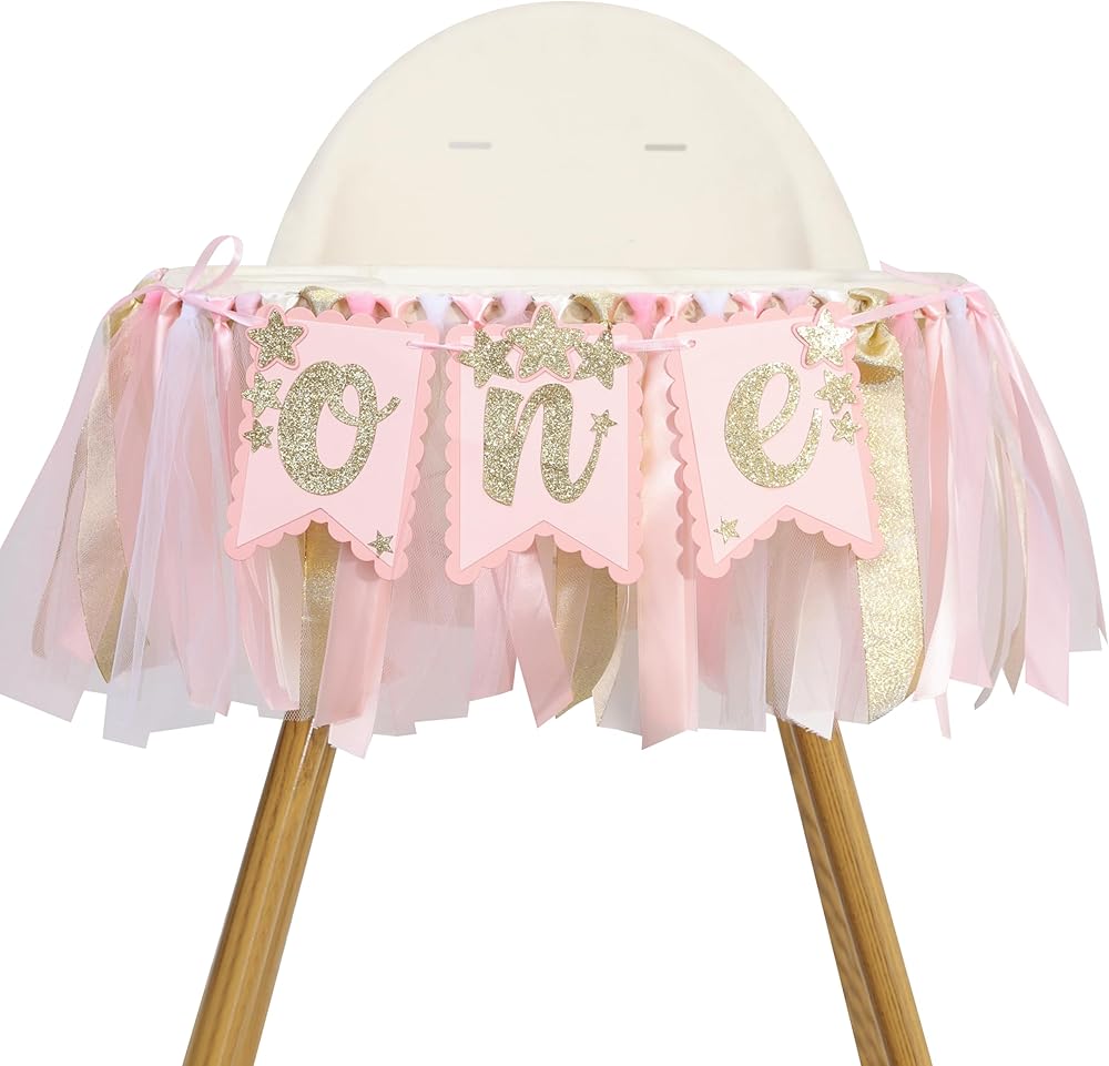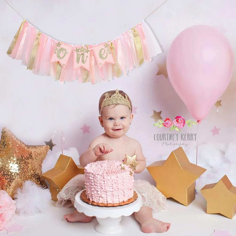 This gold pink little star 1-year-old high chair banner is suitable for your daughter, niece, nephew, granddaughter, and other girls' pink themed 1-year-old birthday parties
