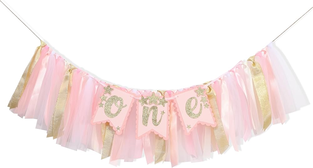 • GLITTER STAR ONE BIRTHDAY HIGHCHAIR BANNER: This is Little Star's first birthday! Decorate her high chair with our cute little star banner and turn it into a whimsical perch suitable for fairy princesses. Get ready for a fun filled celebration