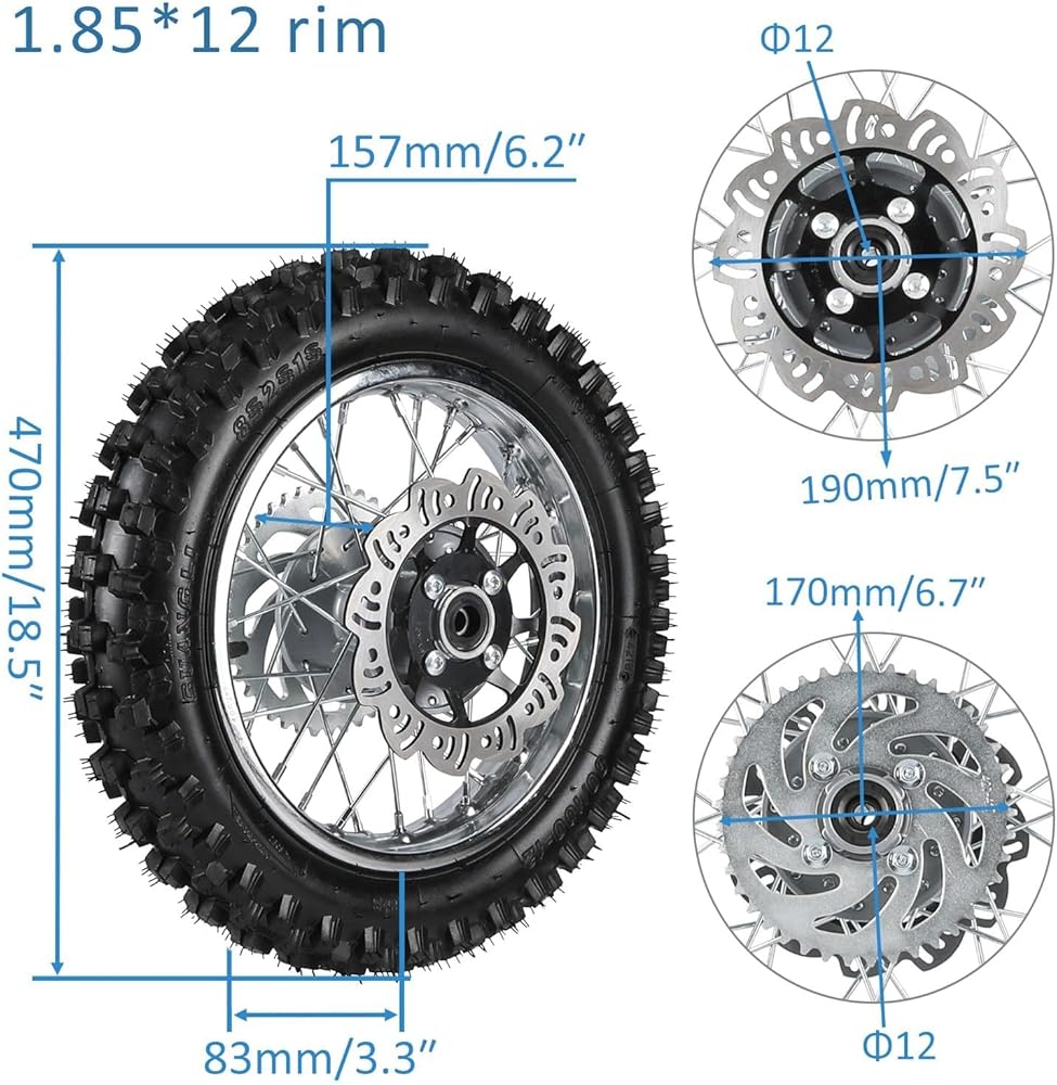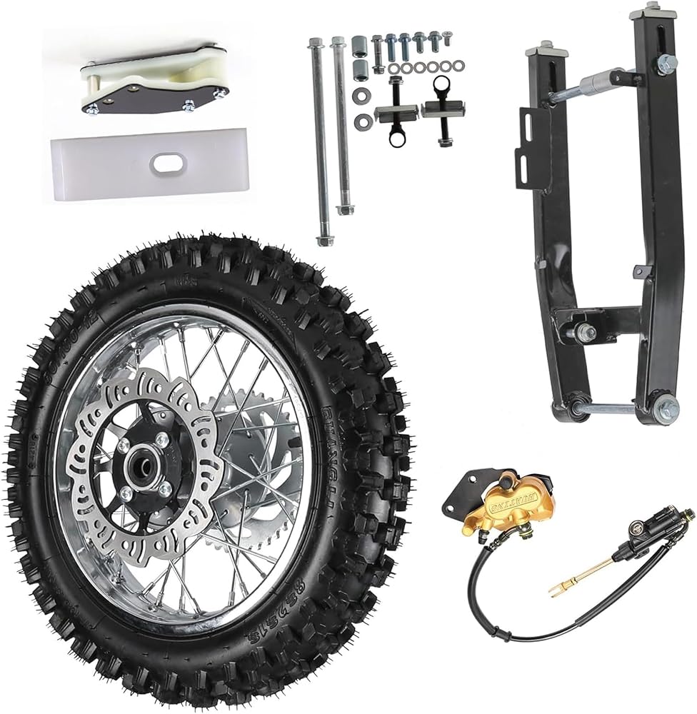 Upgrade your pit bike's rear wheel assembly with this complete 80/100-12 rear wheel and swingarm brake kit, designed for durability, performance, and easy installation.