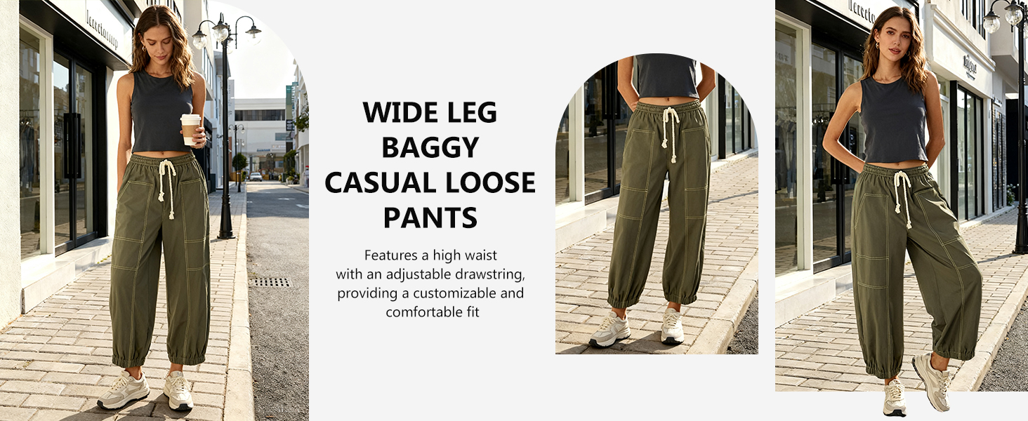 Feature: These baggy wide leg women pants feature an elastic drawstring waist, side pockets, and a wide leg silhouette with a roomy fit that allows free movement. Contrast stitching adds a stylish detail, and the length sits above the ankle