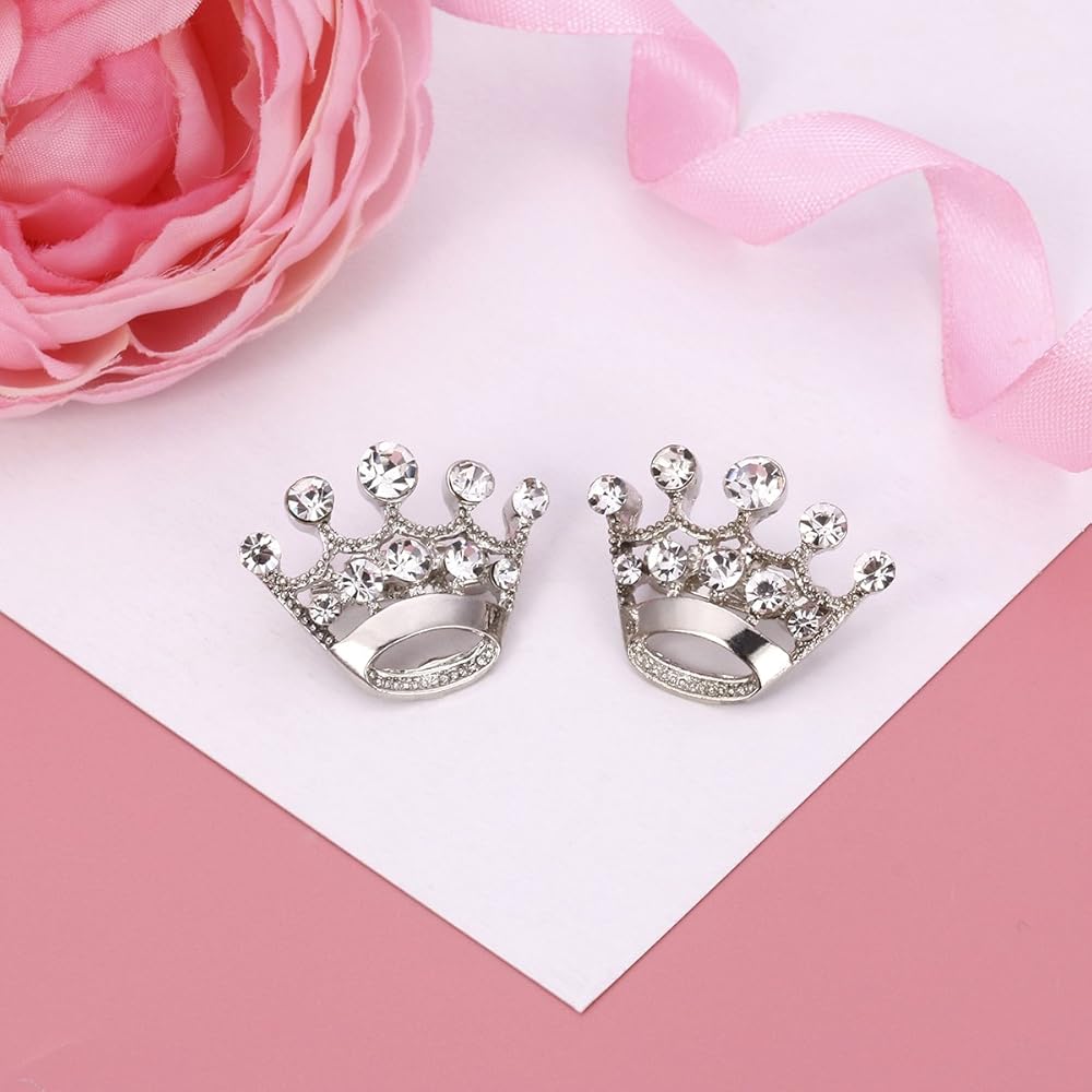 LUOEM 12 Pieces Crown Brooch Fashion Diamond Wedding Party Pageant Tiara Crown Corsage for Wedding Valentine's Day Supplies (Silver)