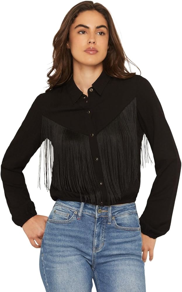 Idyllwind Women's Richfield Fringe Long Sleeve Snap Western Shirt Black Medium US