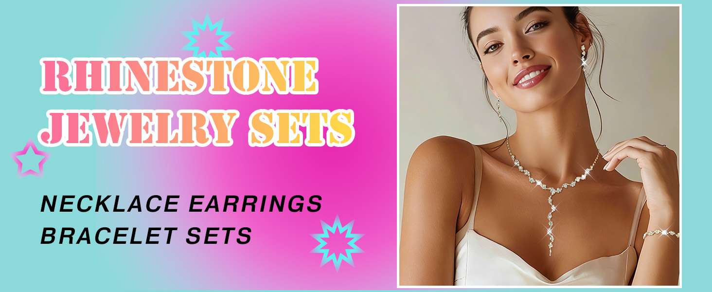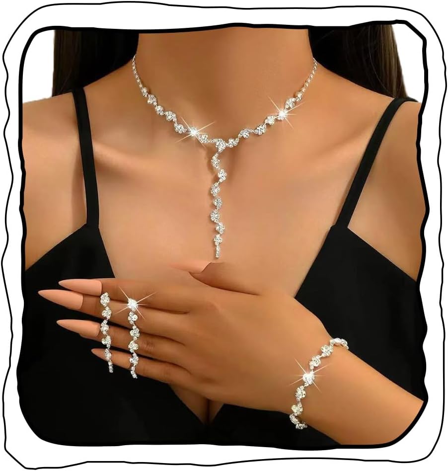 - Rhinestone Necklace Length: 19.9 inches, Shine Bracelet Size: 9.8 inches, Dangle Earrings Size: 2 inches, adjustable size for women ladies