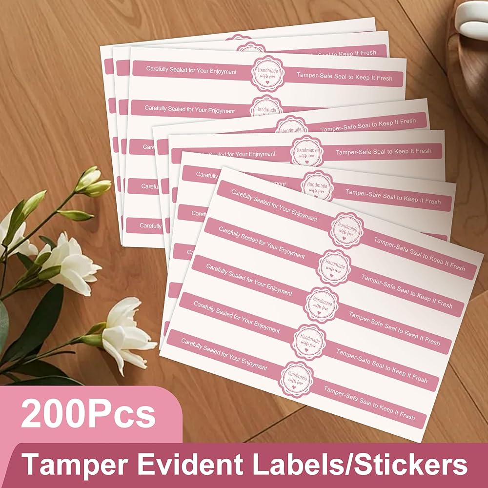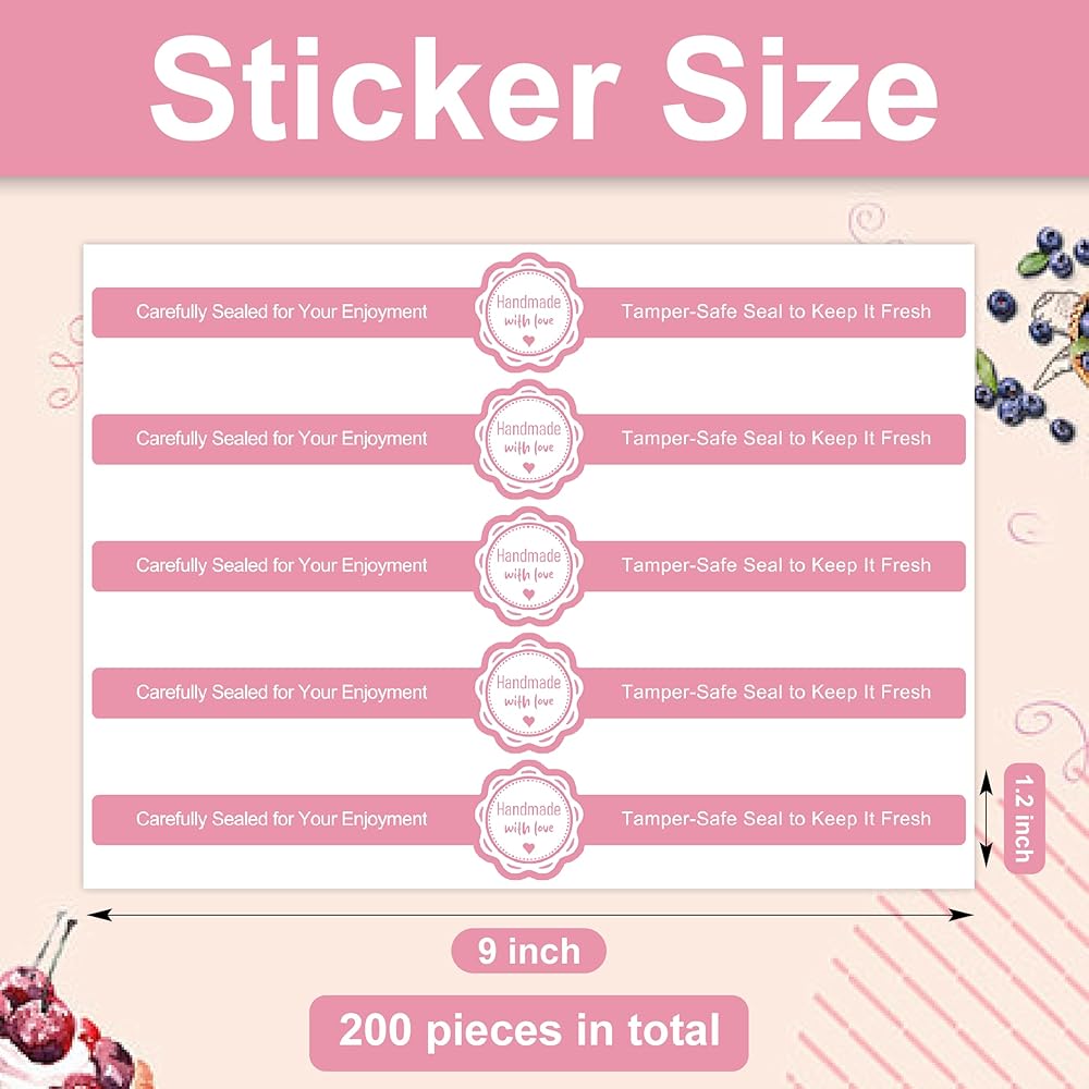 Tamper Proof Stickers 9x1.2 Inch, Bakery Stickers and Labels for Baked Goods, Handmade Crafts, Packaging, and Small Business Use, Tamper Evident Seal Sticker, 200 Pcs (Pink)