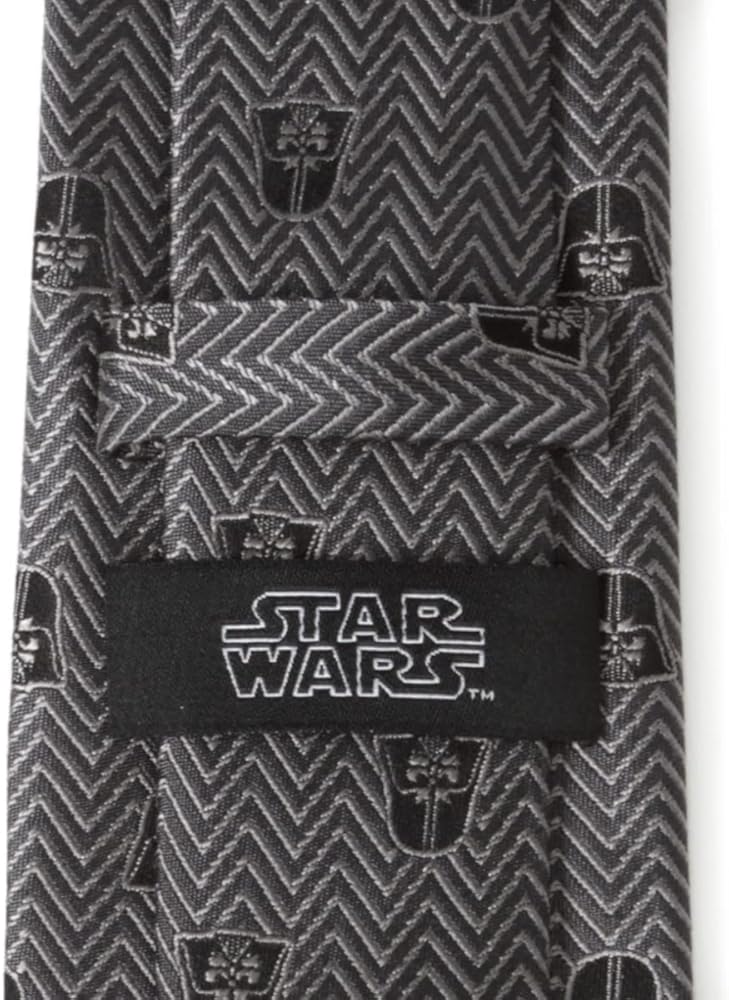 "I find your lack of faith disturbing," that this tie will not be the highlight of any ensemble. Made with 100% silk, Darth Vader's helmet sits on top of a grey herringbone design. Vader's helmet almost seems to pop off the tie, reminding you just who is in charge. Officially licensed by Lucasfilm LTD.