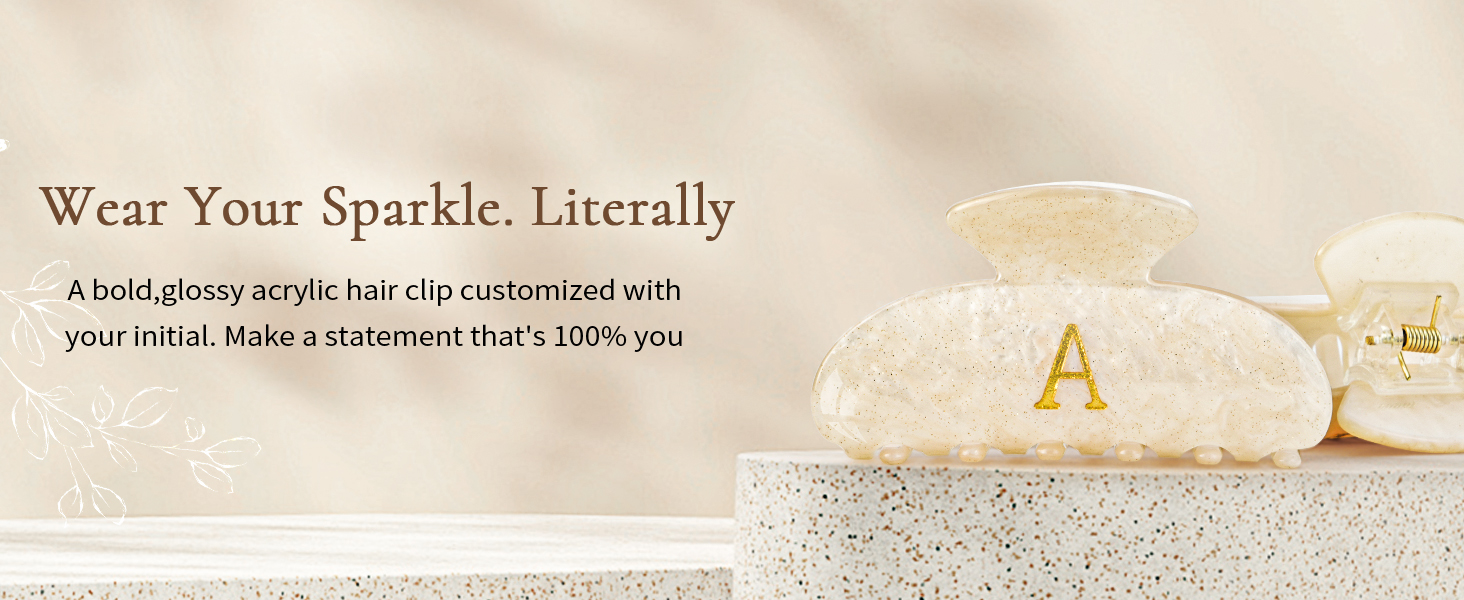YOUR INITIAL IN GLITTER & ACRYLIC: Personalize your style with a sleek hair clip featuring your initial, encapsulated in dazzling glitter and crafted from modern acrylic