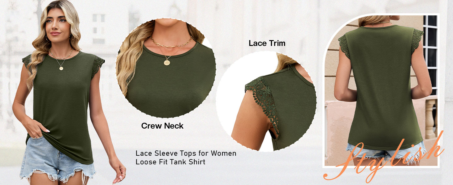JUSTFASHIONNOW women's cap sleeve blouses with a casual design, comfortable fabric and versatile style, which is a must-have item for summer. Elegant lace accent, adding a refined, feminine touch that elevates this cute shirt from basic to extraordinary. For a relaxed weekend look, pair it with your favorite leggings, jeans, or denim shorts and comfortable sandals. Tuck it into a sleek skirt or tailored trousers, add statement jewelry and a pair of heels, create the fashion look. You can wear casual ladies blouse for a walk, exercise, shopping, or vacation, suitable for any summer occasion