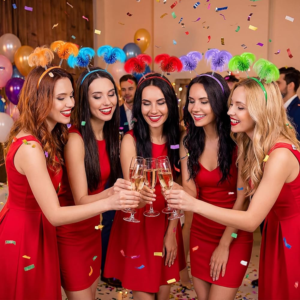 6 x Multicolor Pom Pom Headband