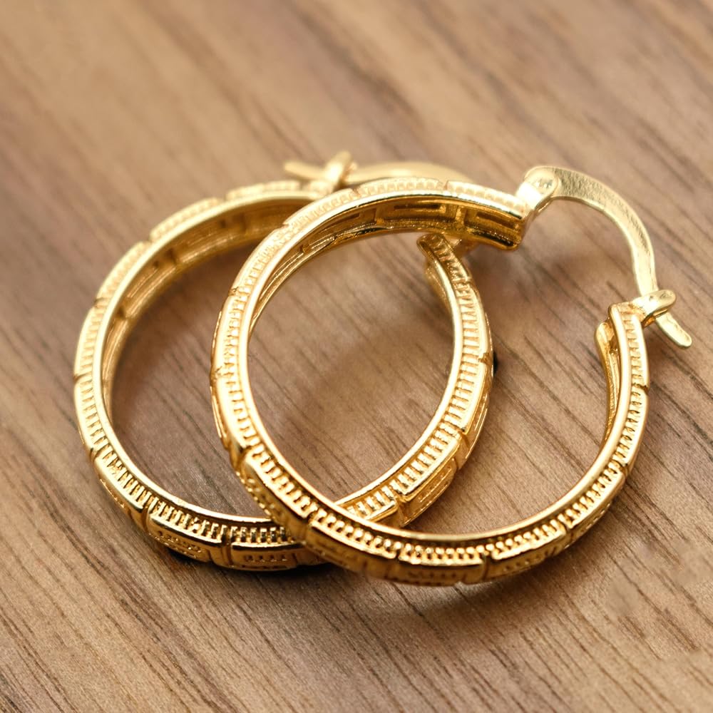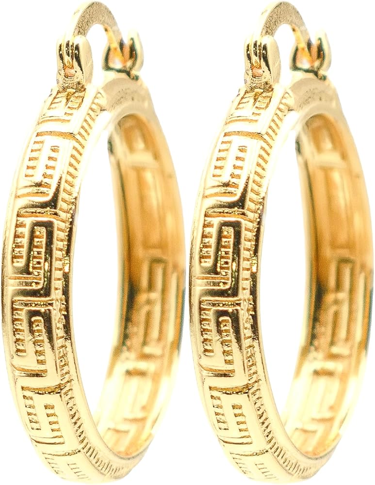 - CLASSIC DESIGN: Greek key pattern hoops featuring intricate geometric design that symbolizes eternal flow and unity