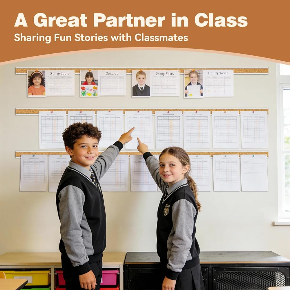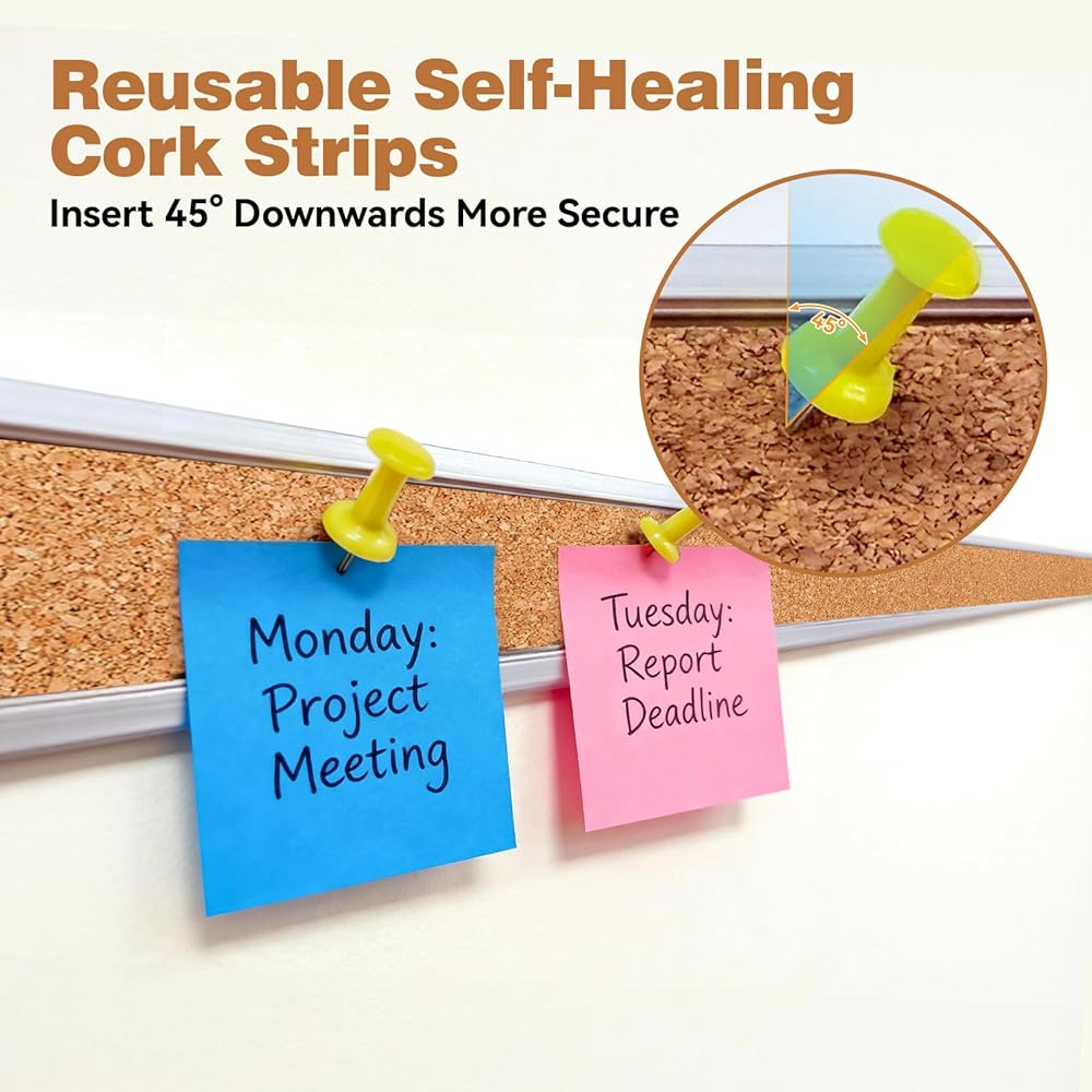 Self Healing Cork Surface: Cork board bulletin strips feature a self-healing surface that automatically repairs holes left by removed pushpins, maintaining a consistently smooth board surface. This extends the board's lifespan and ensures durability