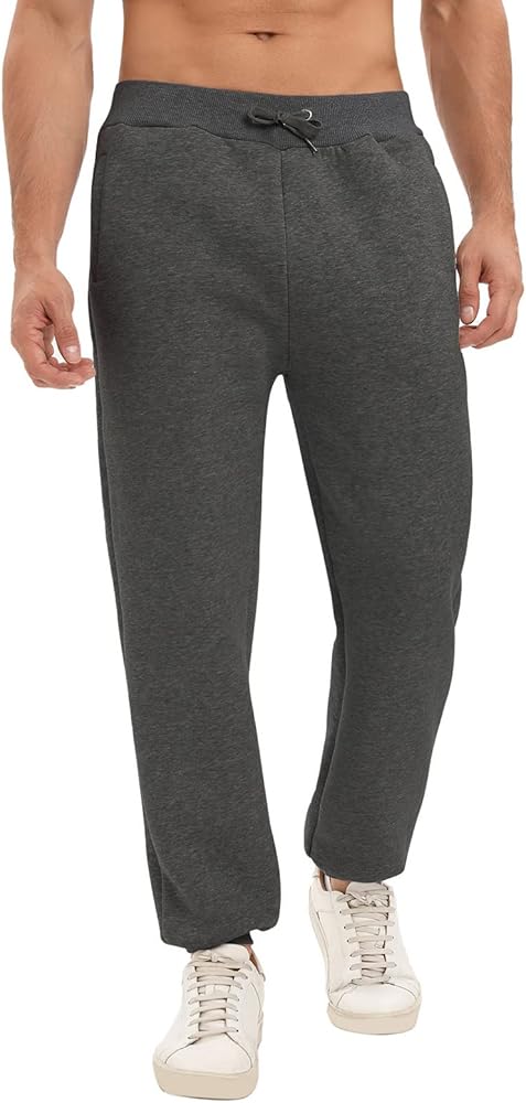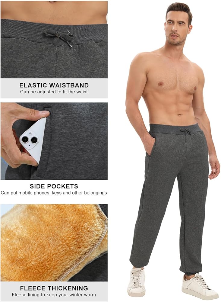 【CLASSIC DESIGN-FLEECE JOGGINGS】Mens jogger pants a bundle foot design , thickened sherpa lined, Elastic waist with adjustable drawstring will naturally fit the human body with back curve, more close and more comfortable. Featuring two deep side pockets , you can securely store your phone, keys, or wallet while jogging or running. No more worrying about losing your belongings.