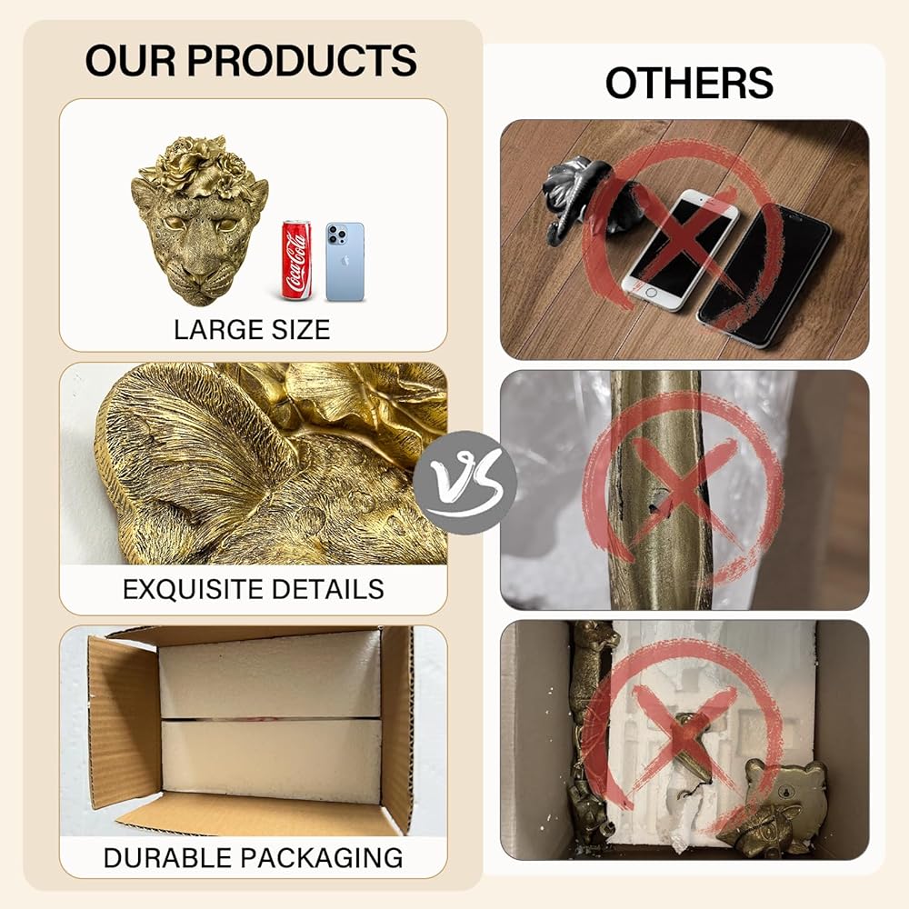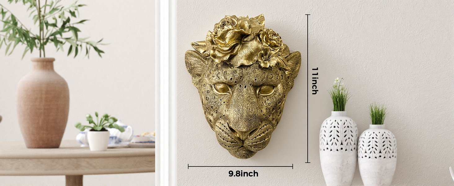 【LARGER DIMENSIONS】Measuring 11" x 9.8" x 4.3", this animal head wall decor offers a bold three-dimensional presence. Compared to flat metal wall art, the sculpted depth adds stronger visual impact to leopard wall decor or cheetah wall decor themed interiors.