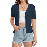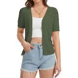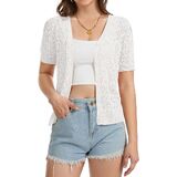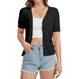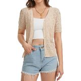 【Delicated Crocheted Fabric】: This womens short sleeve cardigan is made from an airy crochet knit that feels light on the body and allows heat to escape easily. Soft, breathable, and comfortable for warm weather or layering indoors.