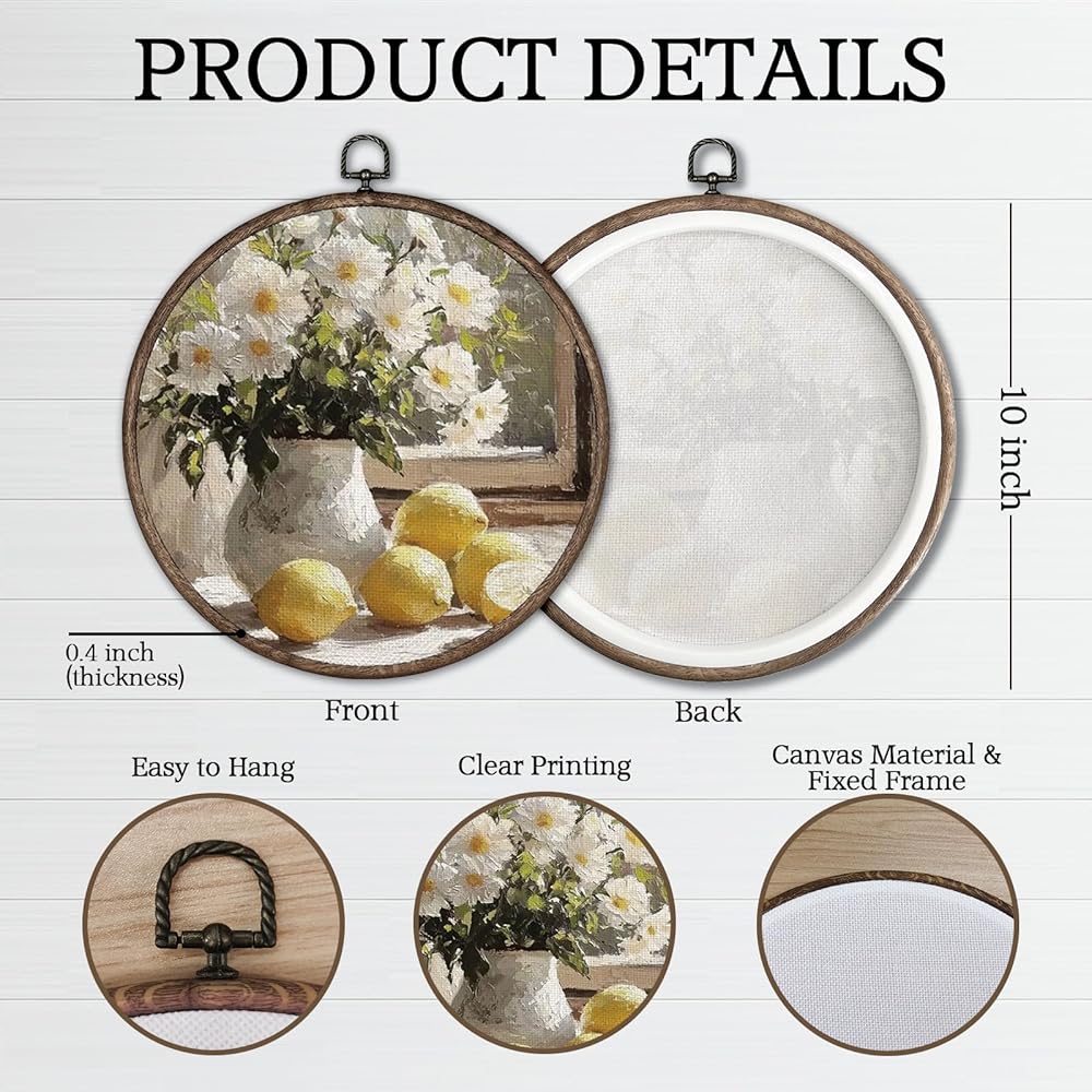 This round canvas wall art measures 10 x 10 inches and comes with a matching round frame for easy hanging. The print features a clear and vibrant design that blends well with different decor styles. Suitable for bedrooms, living rooms, kitchens, nurseries, offices, and more, it adds a decorative touch to any space. With its sturdy canvas material and thoughtful design, it also makes a great gift for housewarmings, holidays, and special occasions.