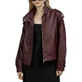 Premium Faux Leather Biker Jacket-Crafted from top-quality materials,this jacket showcases ultra-soft, skin-friendly fabric with a delicate, smooth texture,complemented by a lined interior for all-day comfort.A versatile wardrobe staple that effortlessly blends casual charm with edgy style