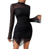 The bodycon fit hugs your curves perfectly, wear this mesh sheer bodycon mini club dress can accentuate your figure and giving you a confident, chic appearance.